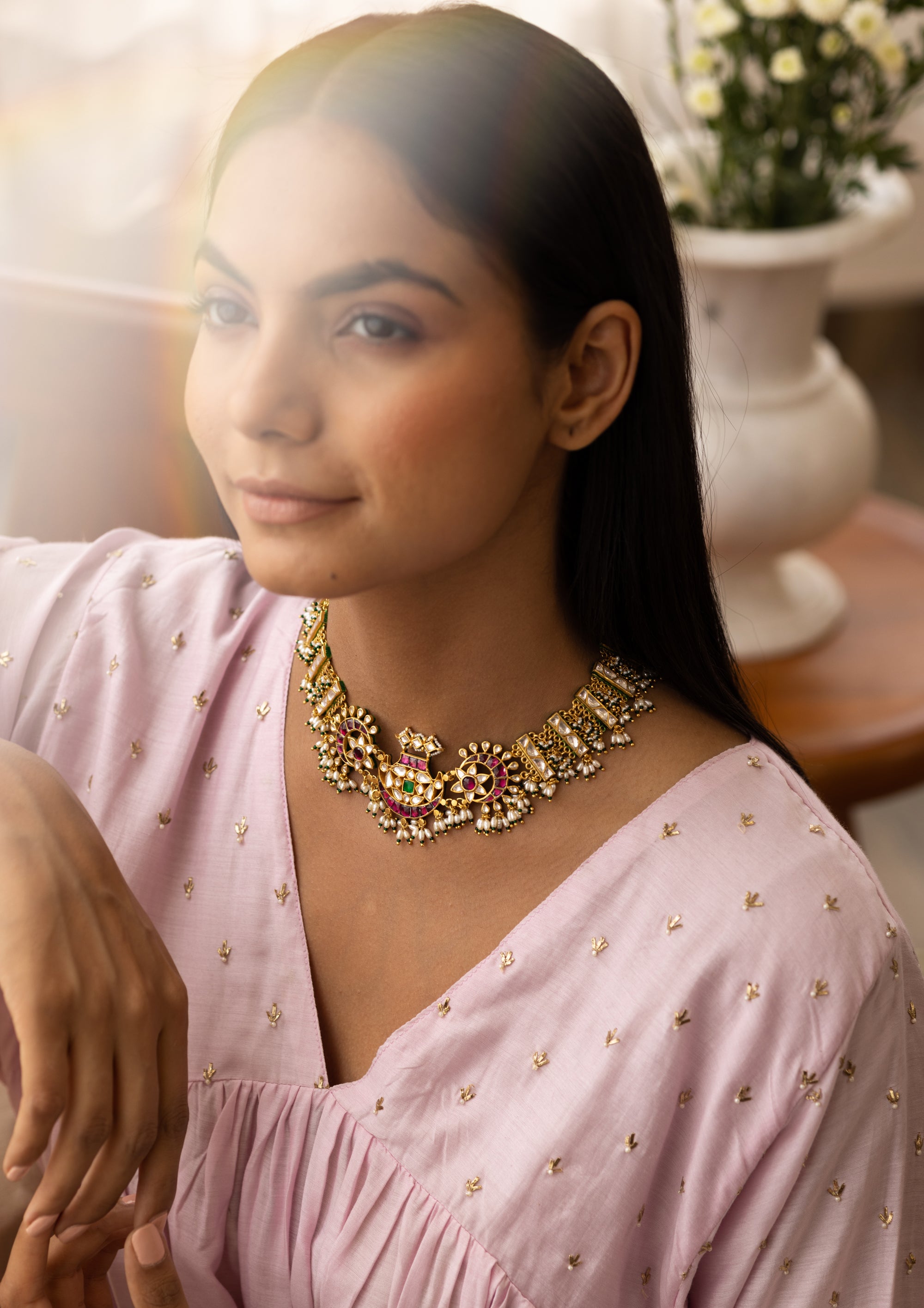 Classic Monochrome Three-Layer Kundan Necklace With Pearls