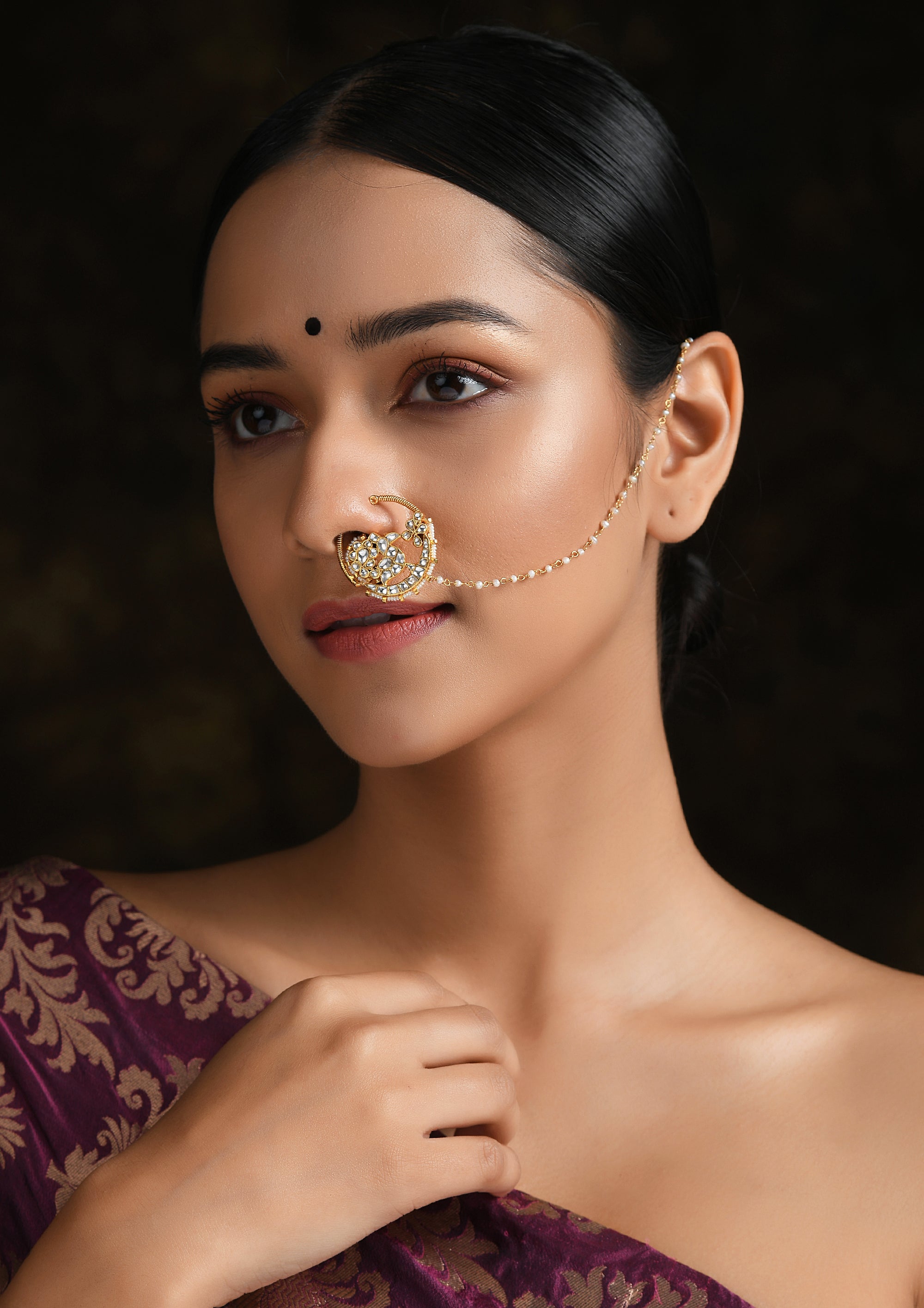 Classic Multicolored Peacock Clip-On Nath With Pearl String
