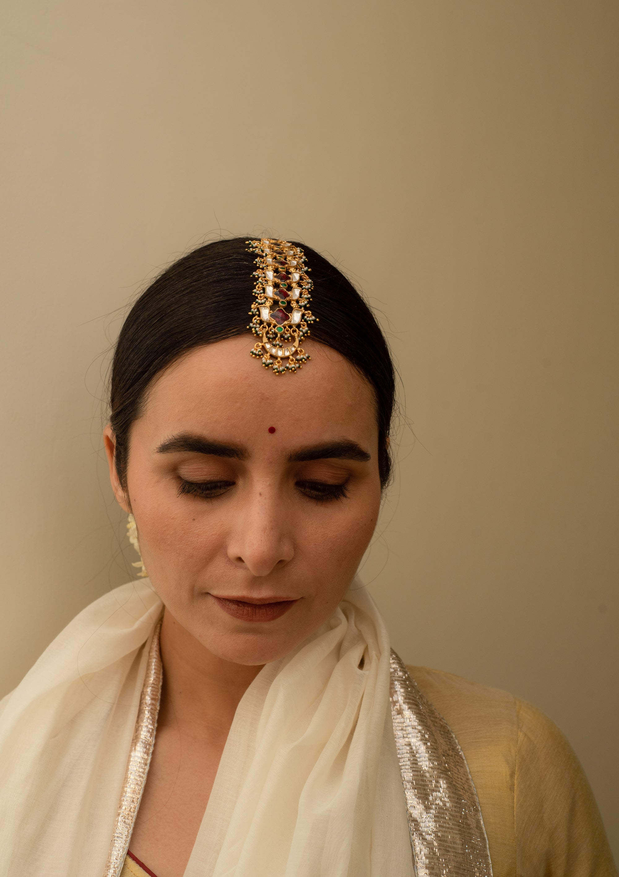 Navmi Oval Chaandbalis With Semi-Emeralds And Gold Polish