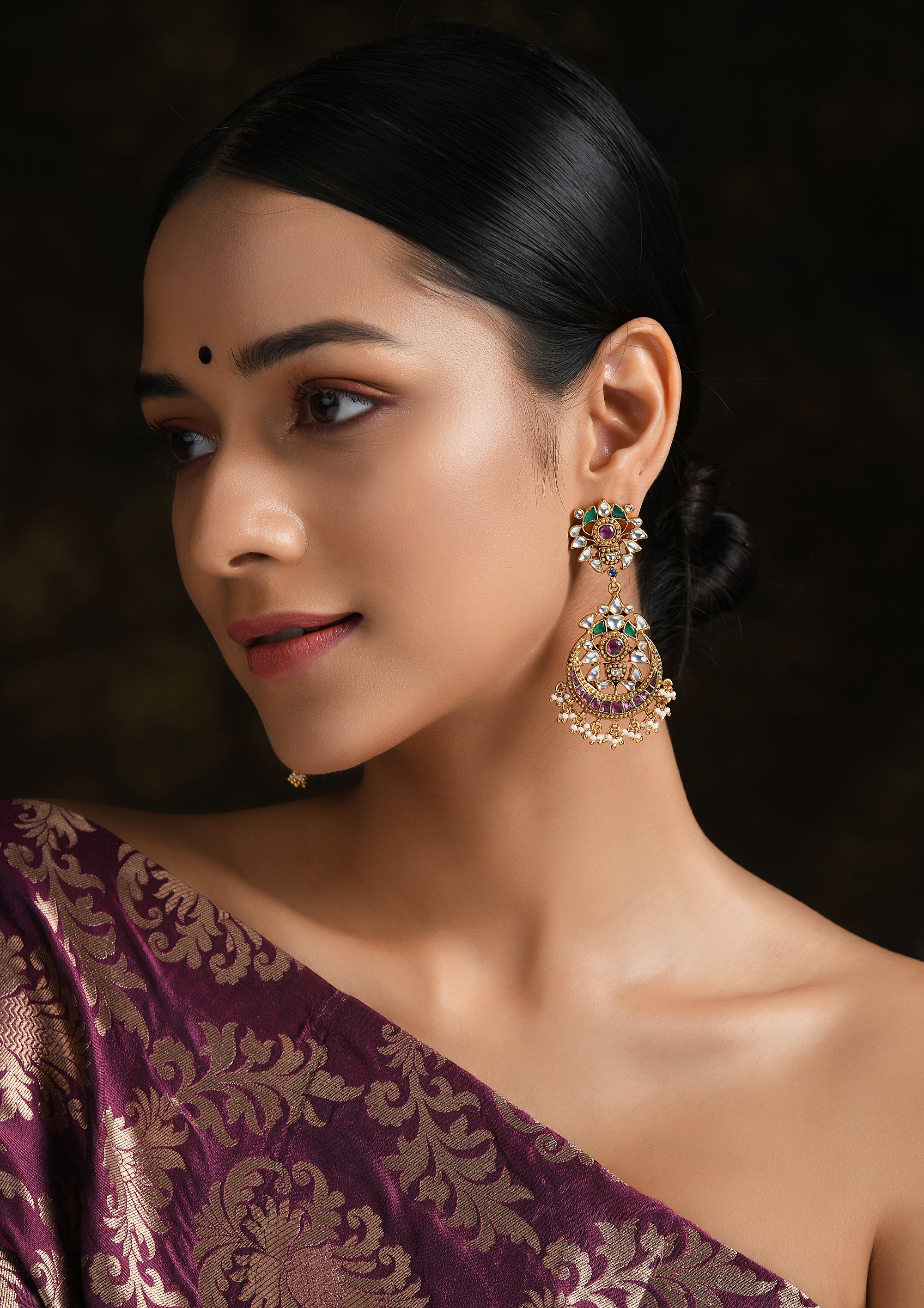 Navmi Multicolored Gold Plated TearDrops Chaandbalis With Pearls