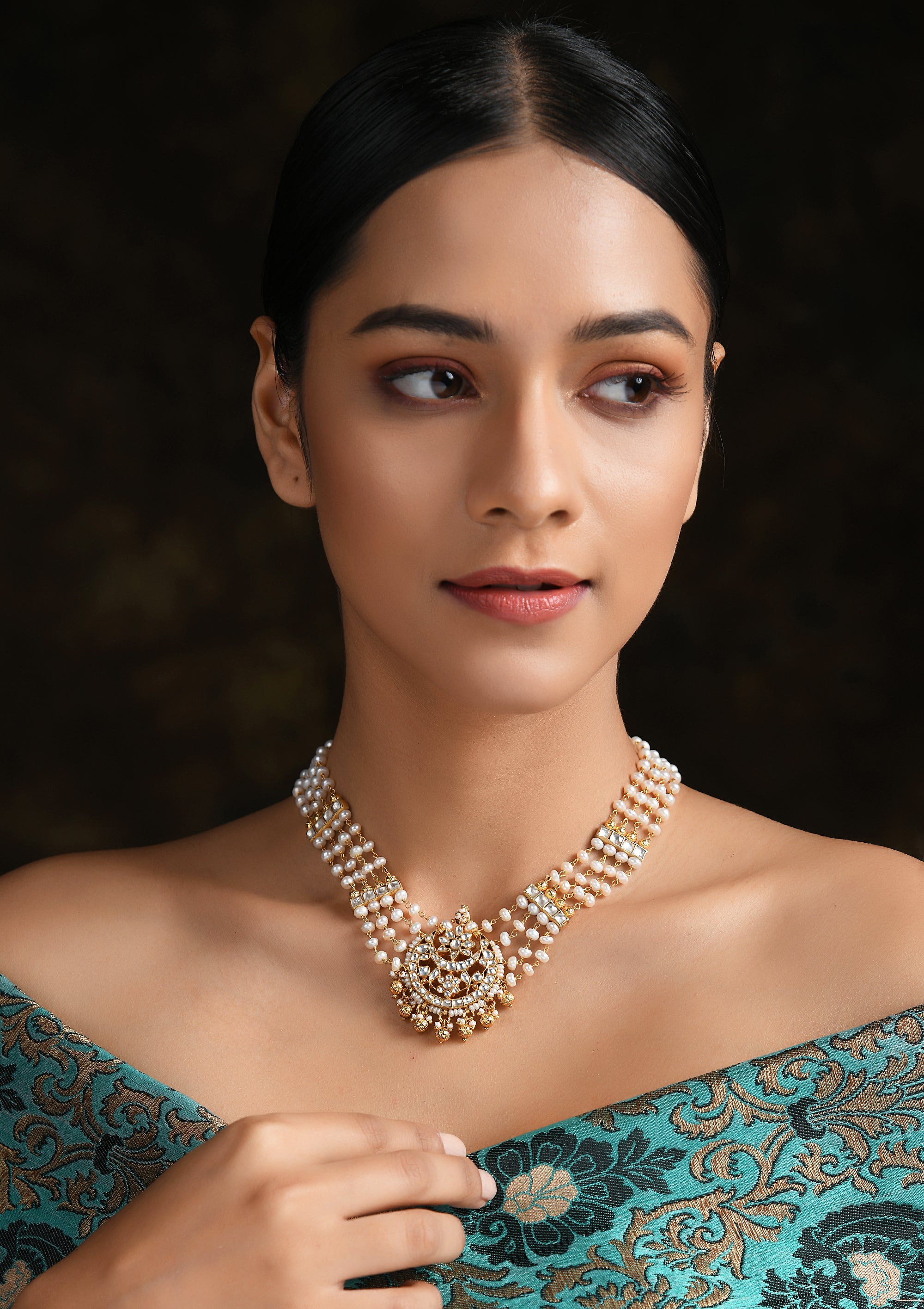 Stones used : Tourmaline, Belur Polki (Semi Precious Polki), Fresh Water Pearls