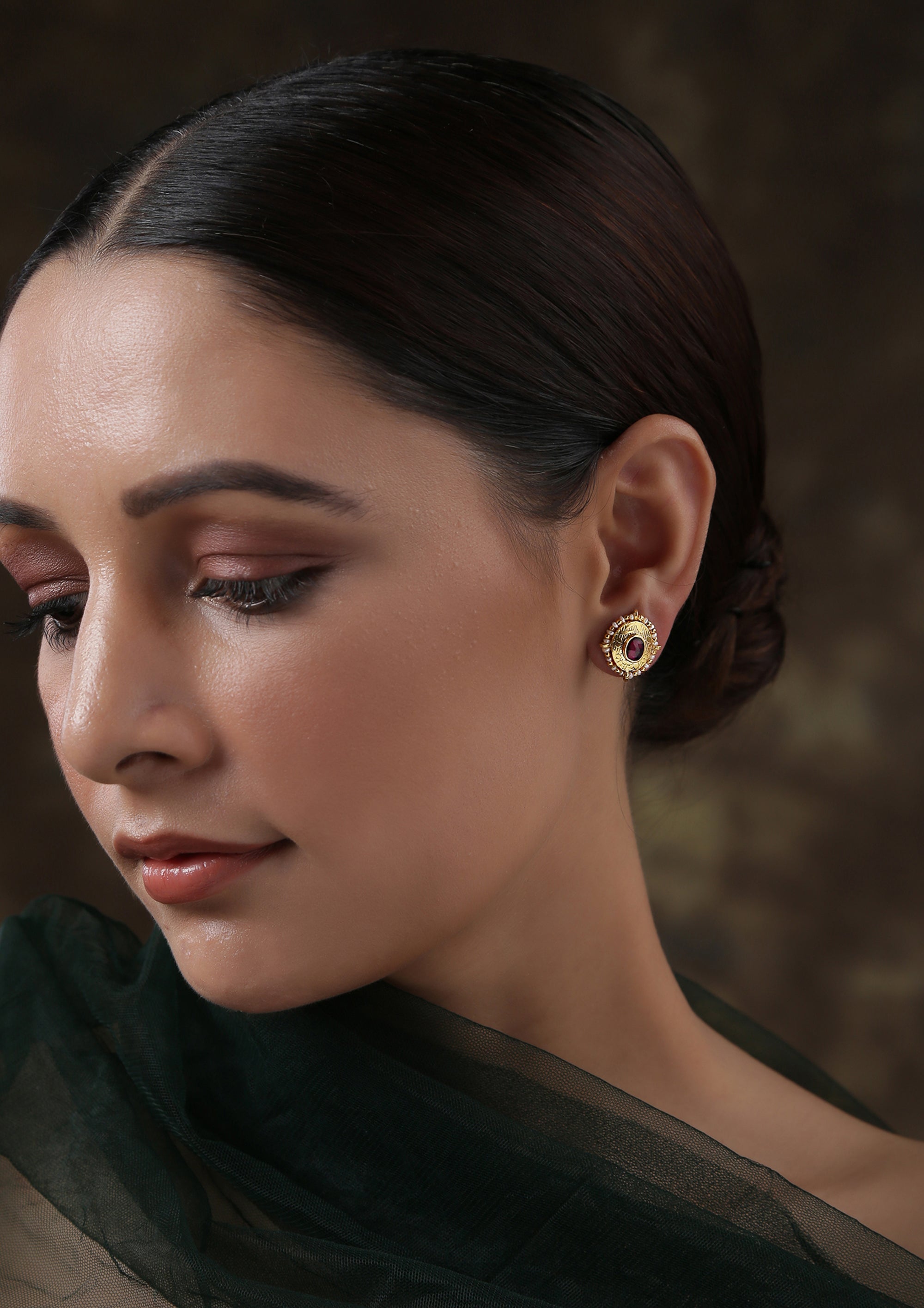 Izra Sterling Silver Ruby Floral Bud Semi-Moissanite Studs