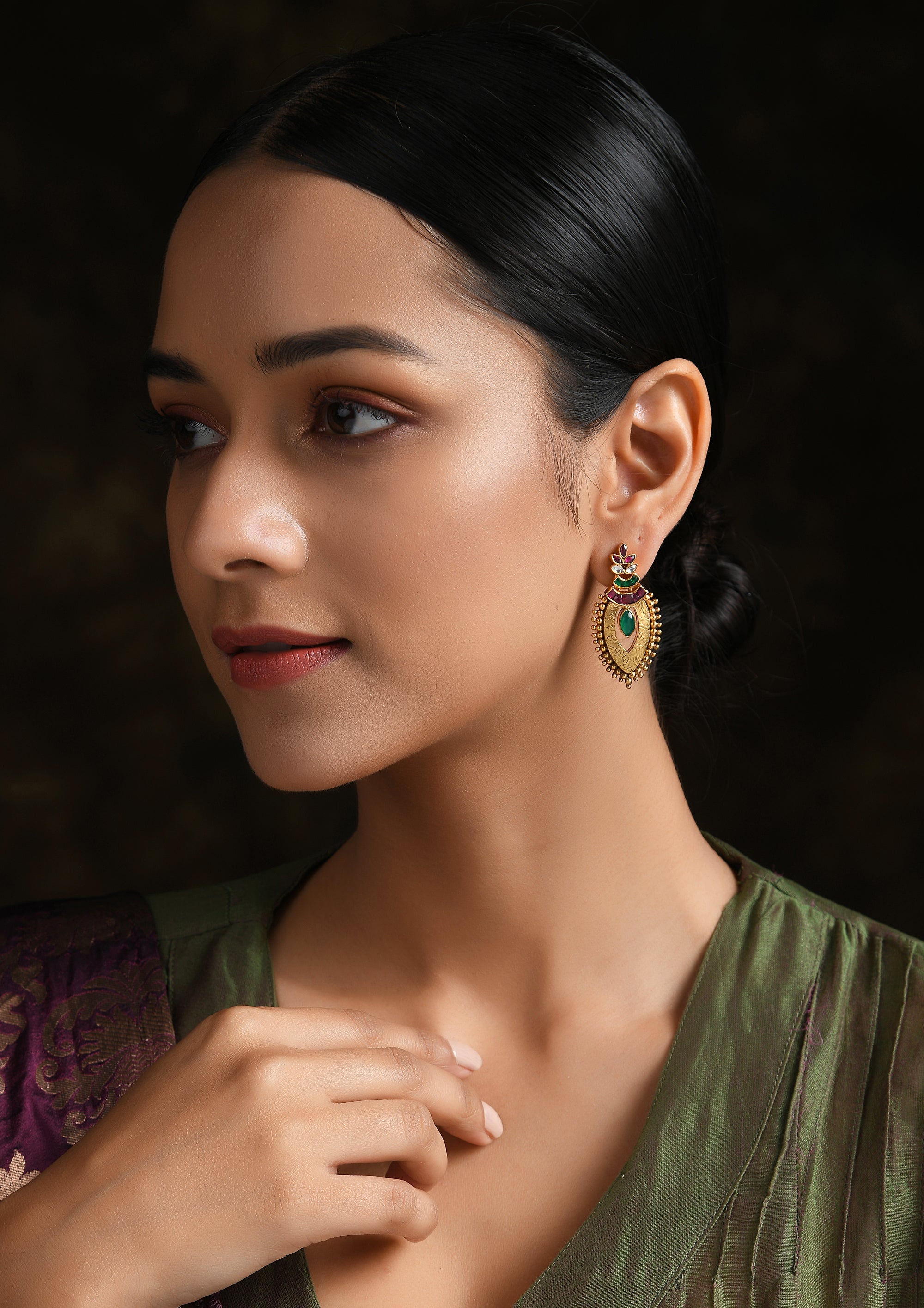 Stones Used : Belur Polki  (Semi-Precious Polki), Tourmaline, Green Onyx, Fresh Water Pearls.
