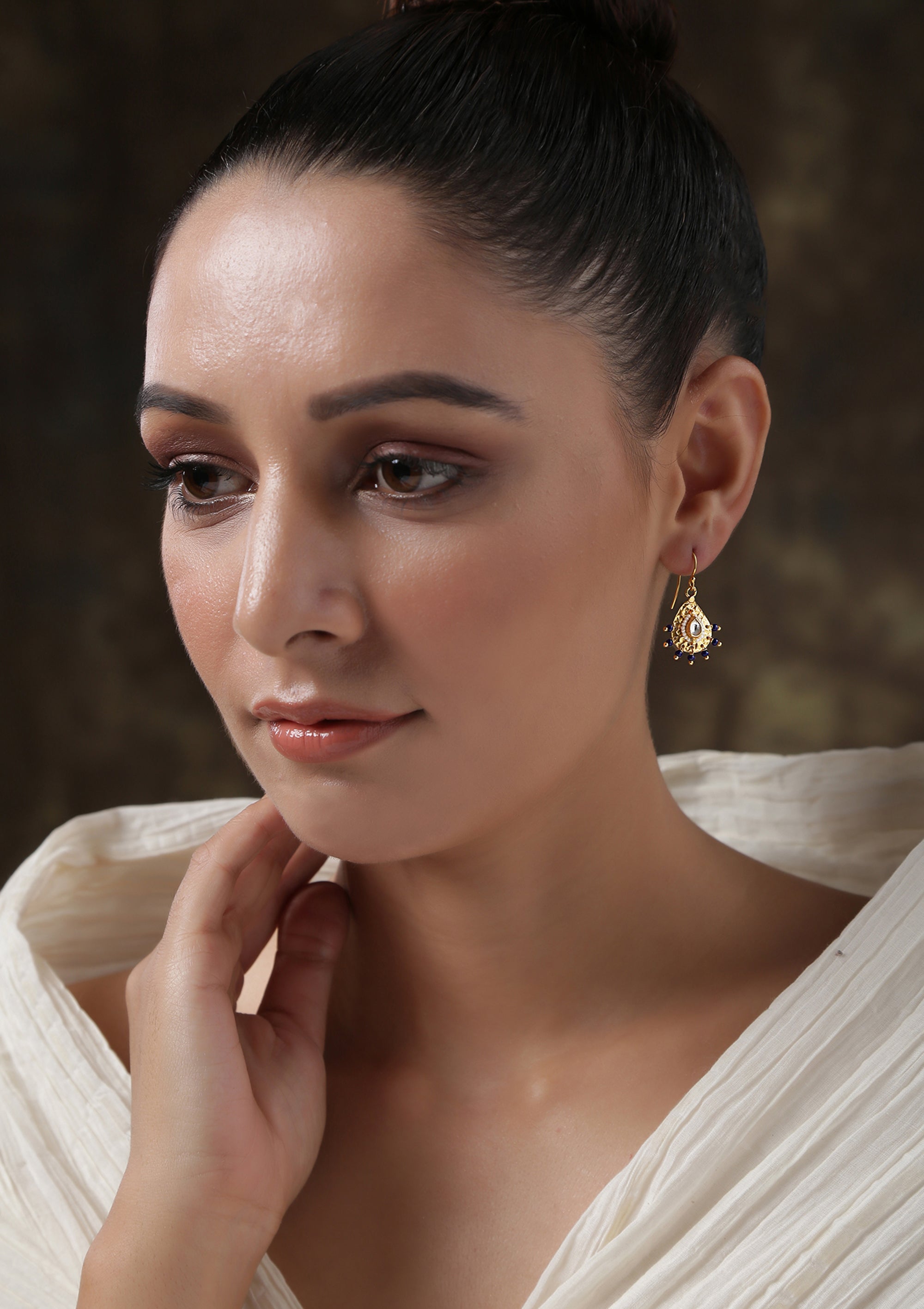 Dopehri Tiny Tear Drops Polki Studs With Pearl Edging