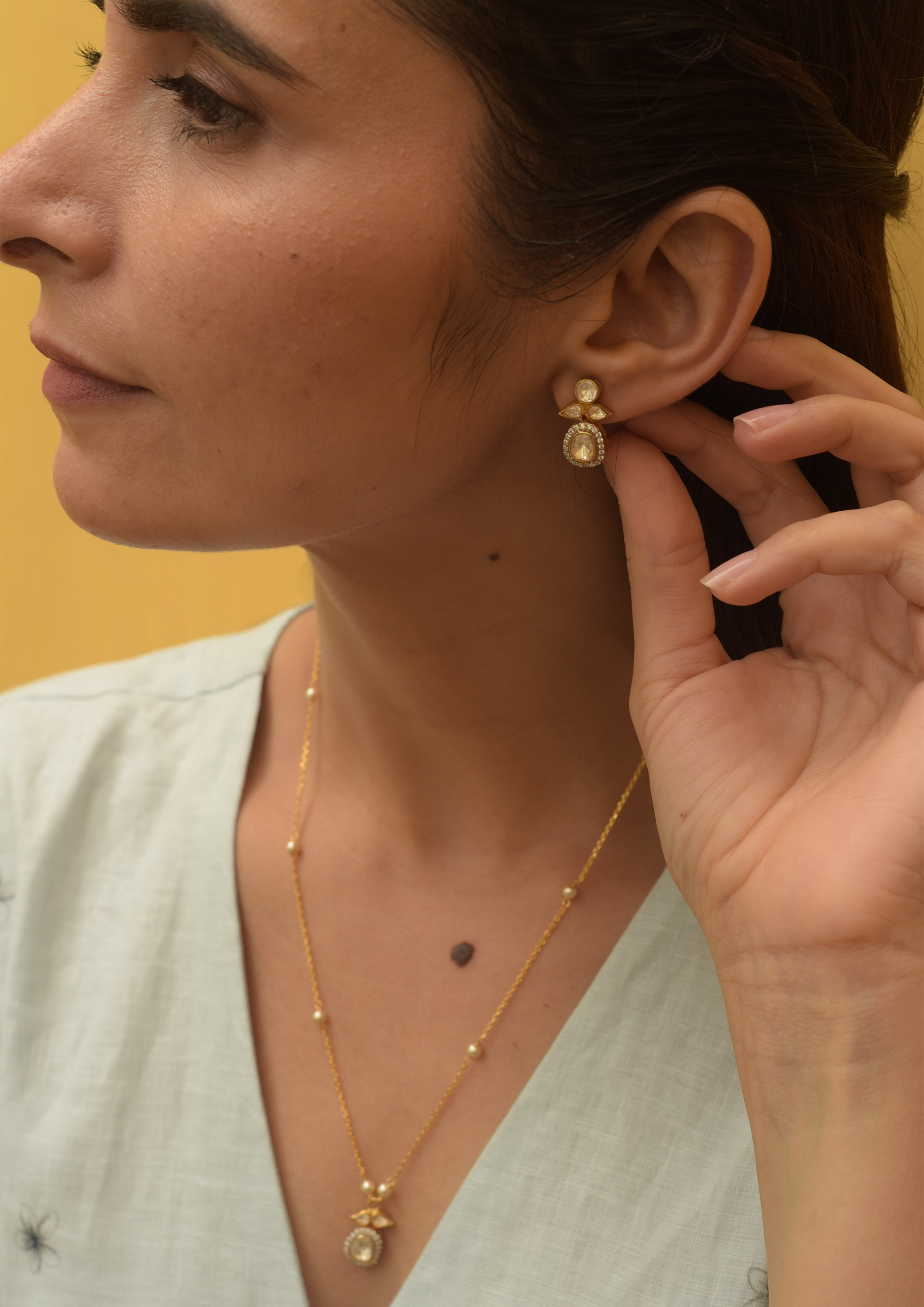 Izra Sterling Silver Big Semi-Moissanite Polki Studs