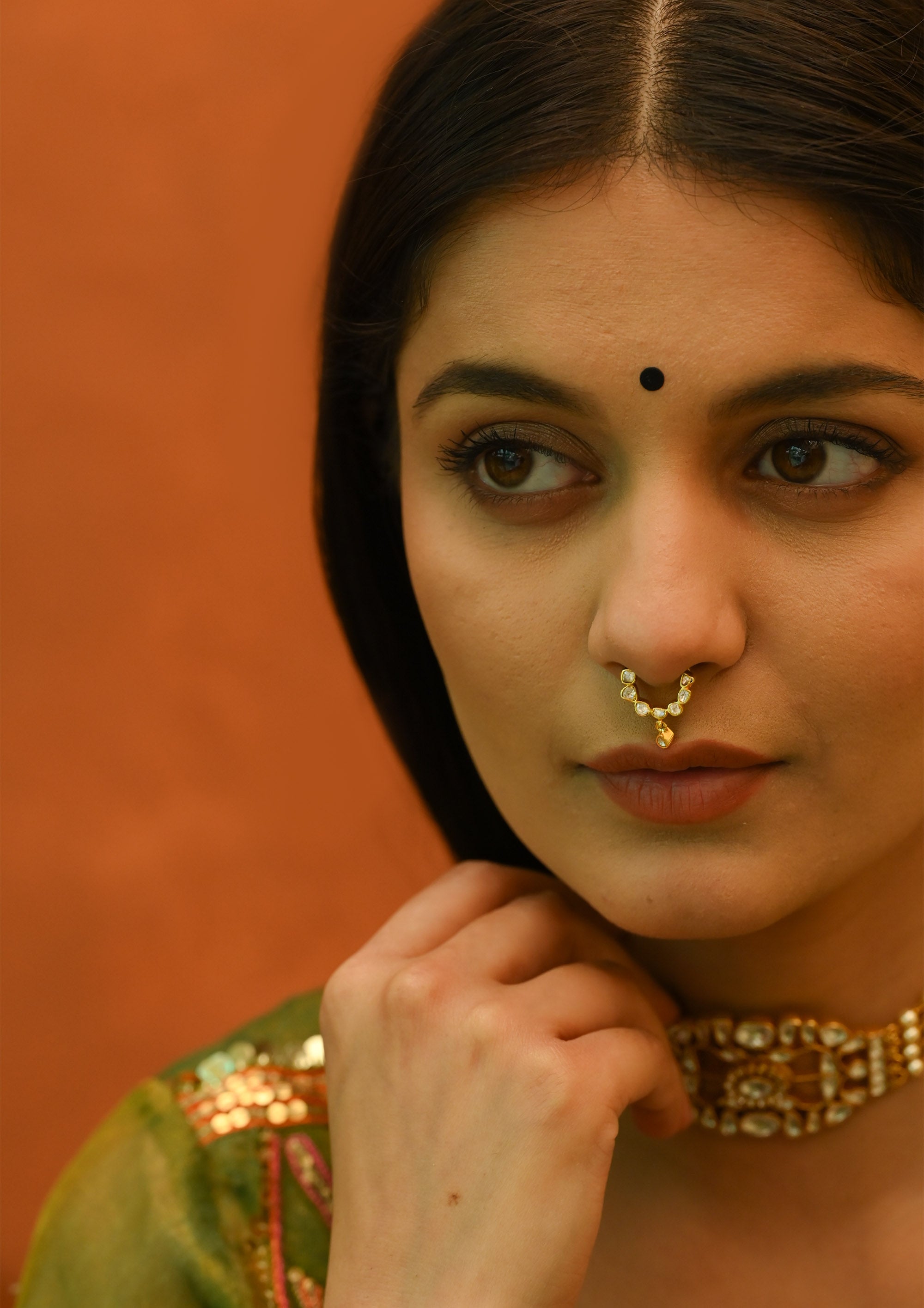 Boond Rani-Paan Tourmaline Studs with Pearl Fringe