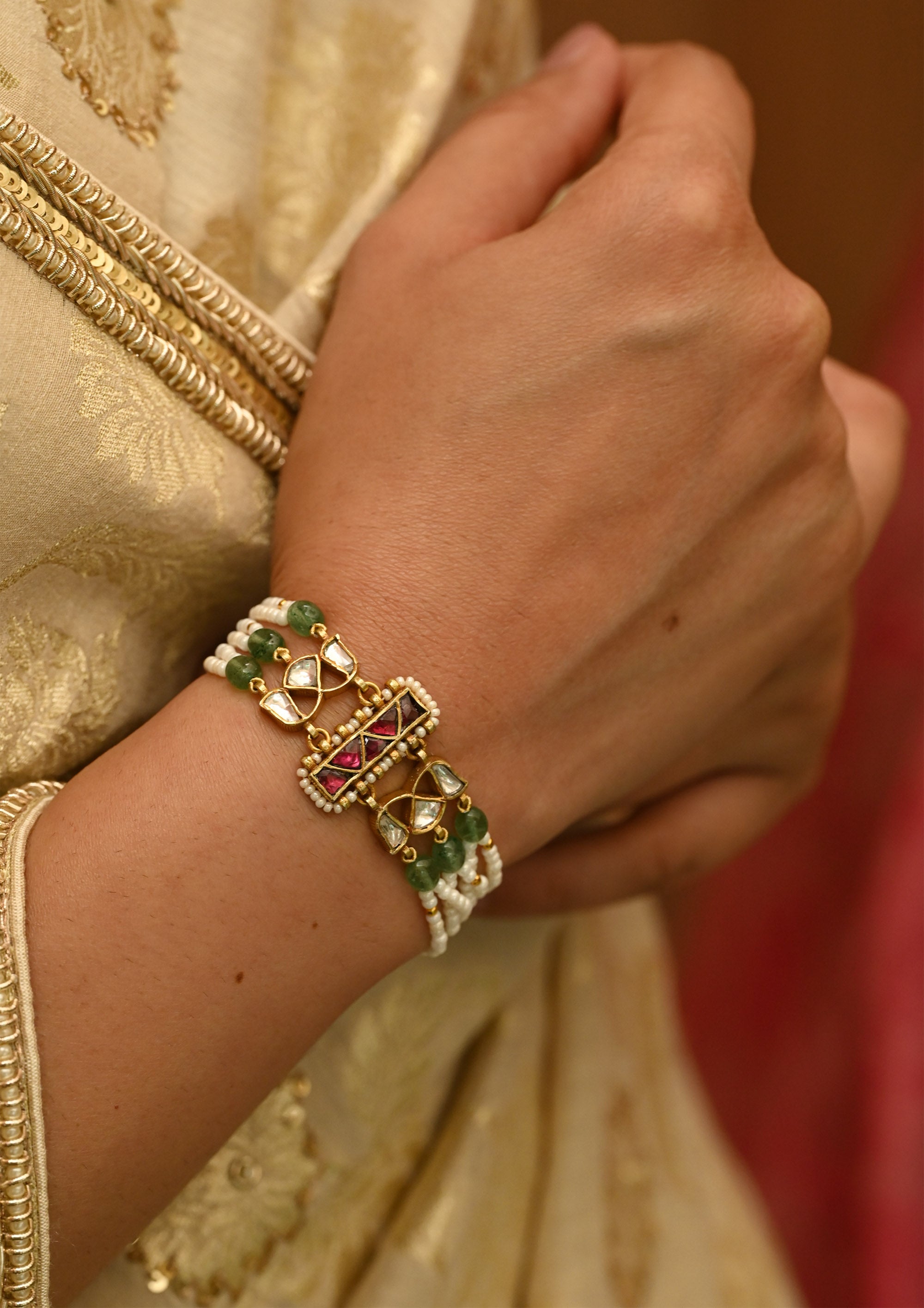 Dopehri Tiny Chiseled Tourmaline Studs With Pearl Edging