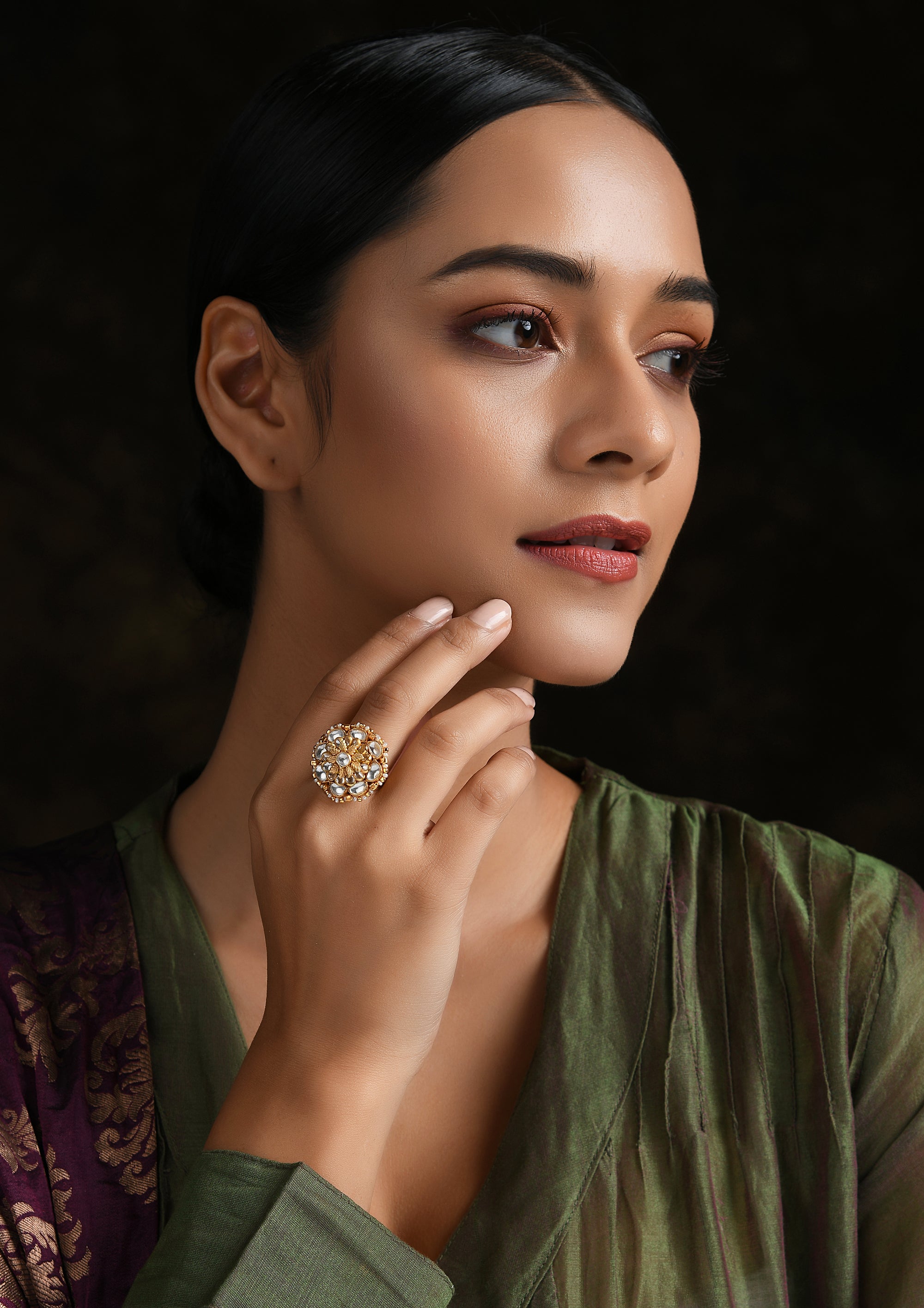 Dopehri Tiny Tear Drops Polki Studs With Pearl Edging