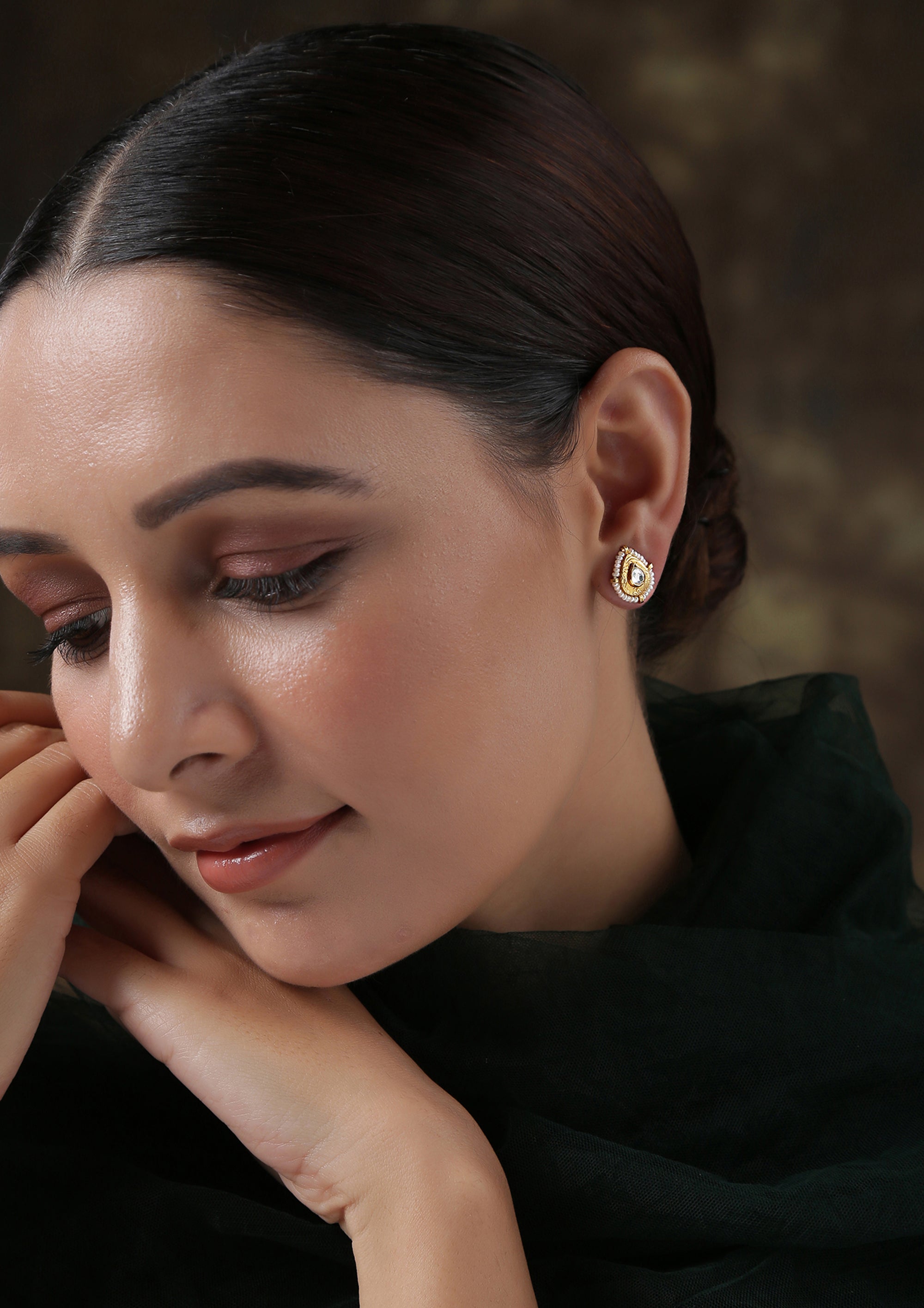 Dopehri Tribal Golden Fish Hook Earrings With Onyx Drops