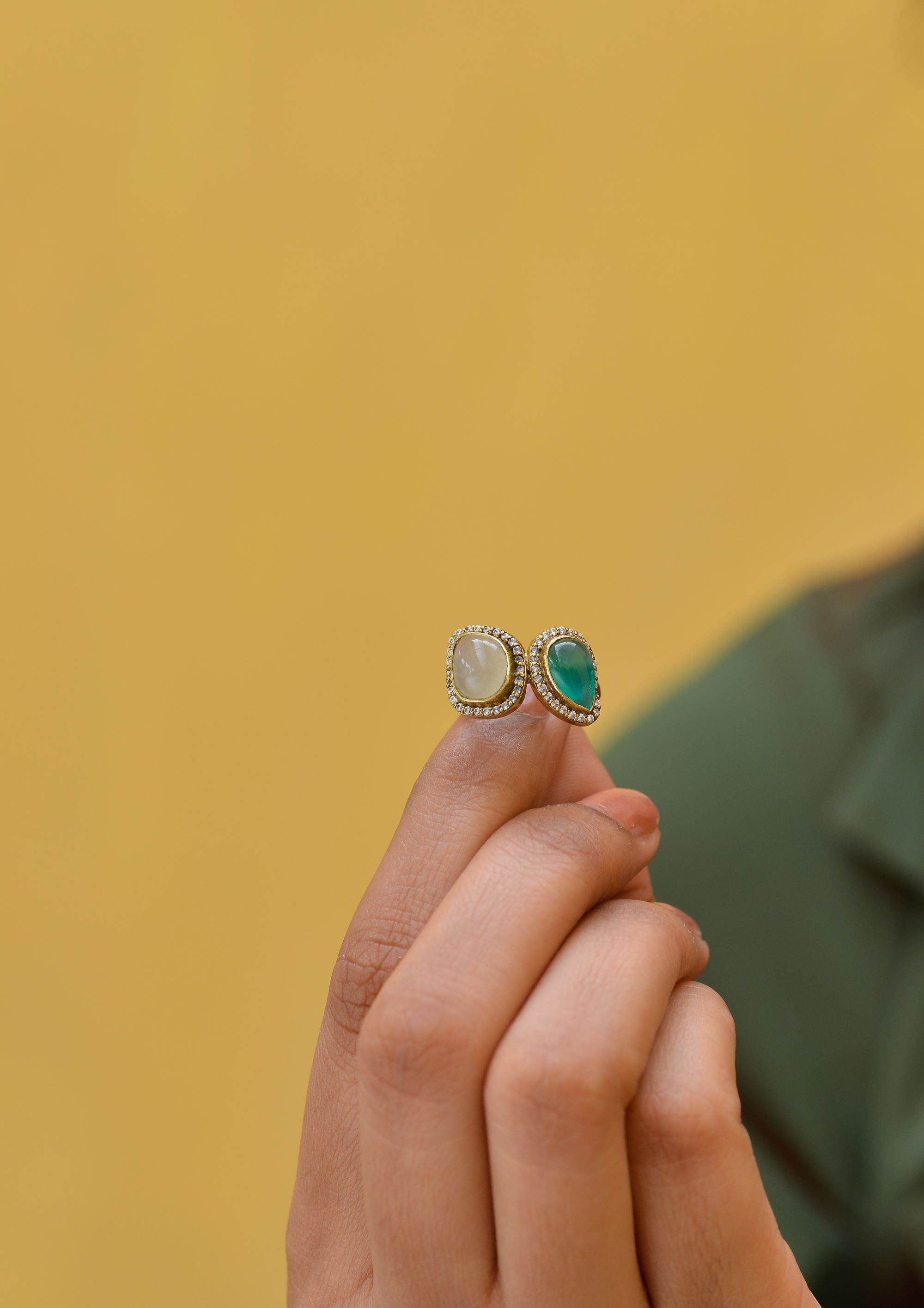 Kundan Earrings With Tourmaline Leaves And Gold Plating