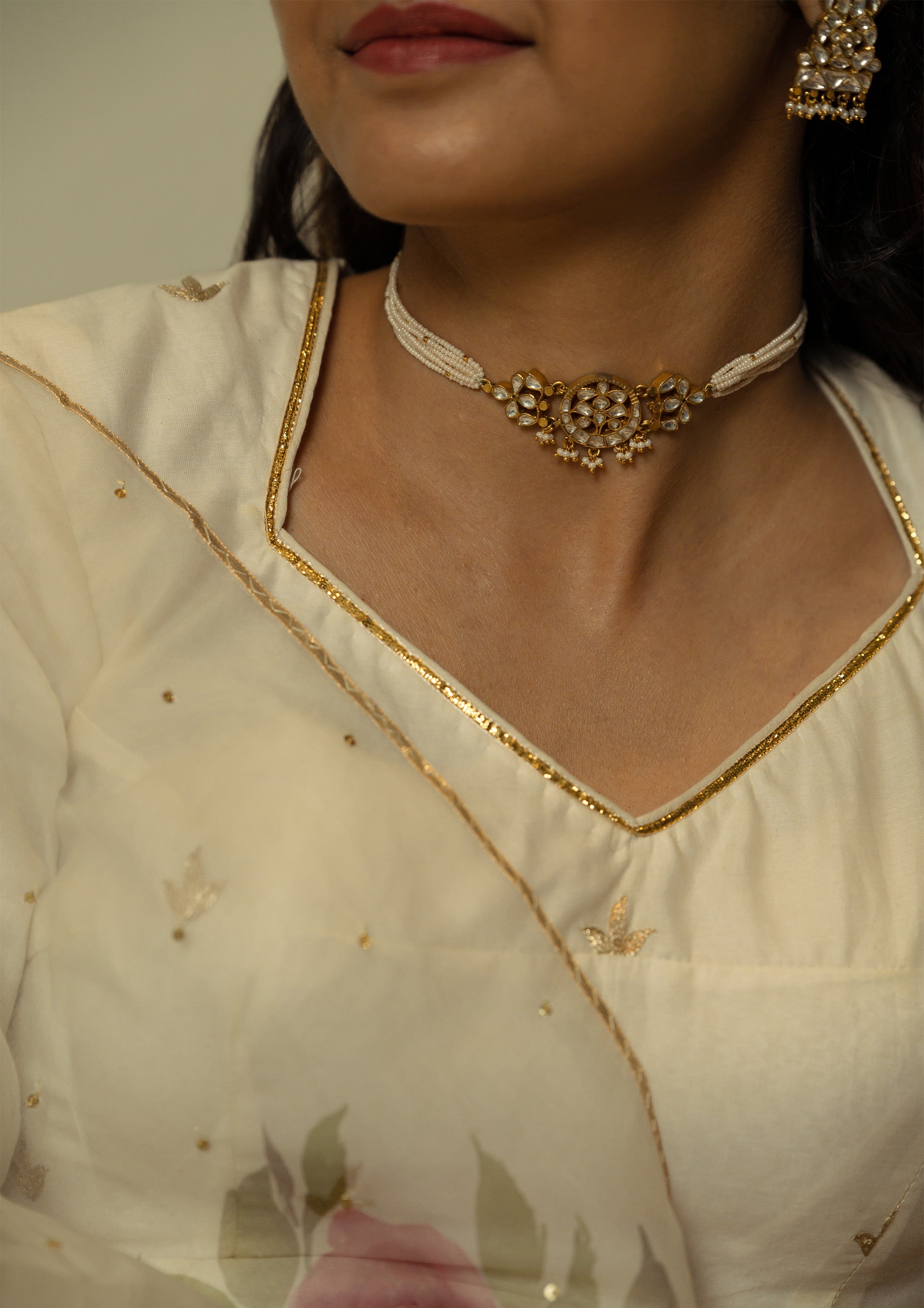 Stones and Beads: Belur Polki, Tourmaline, Green Onyx, Traditional Czech Pearl Beads