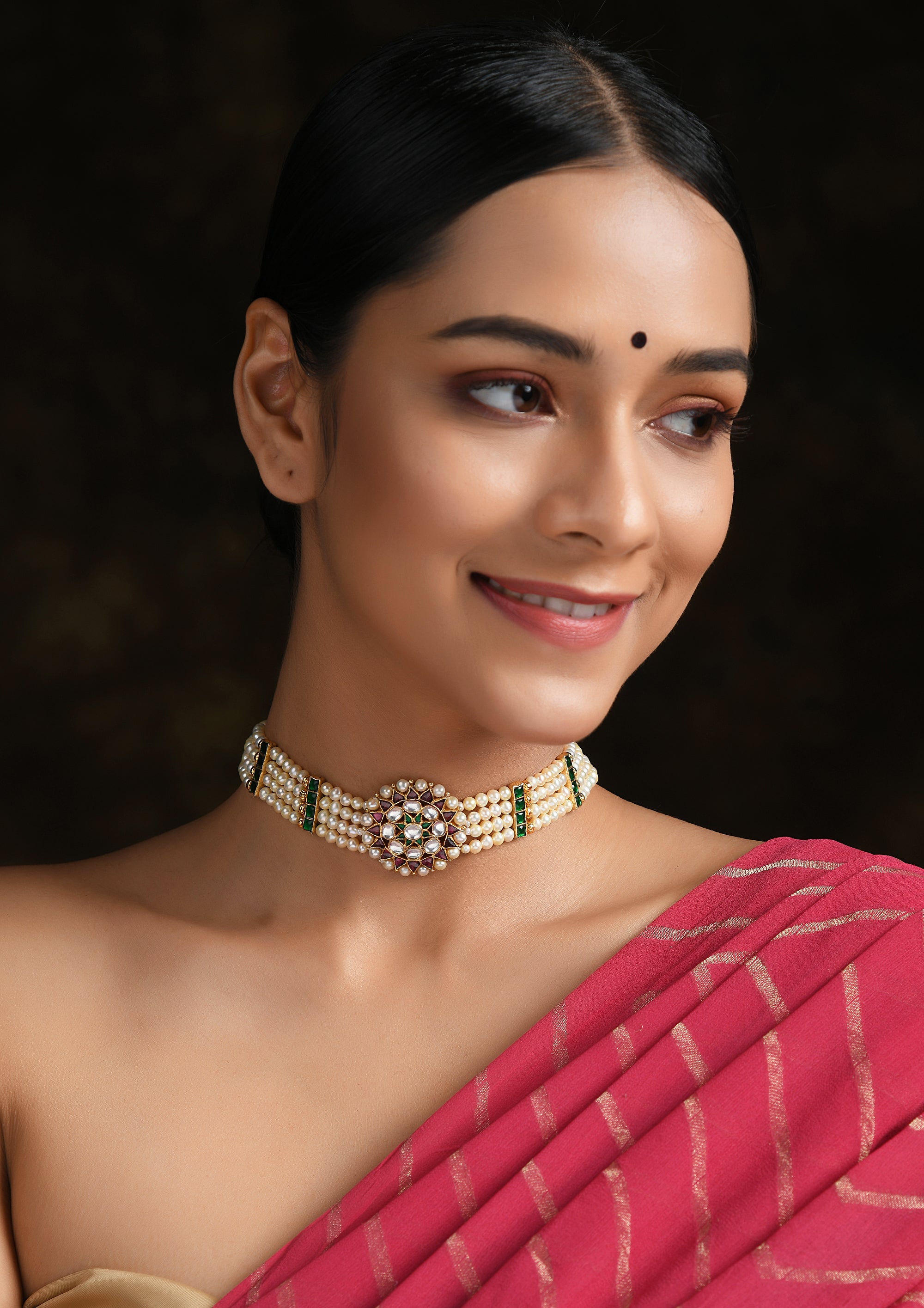 Navmi Semi Choker With Pearls and Half Moon Pink Centerpiece
