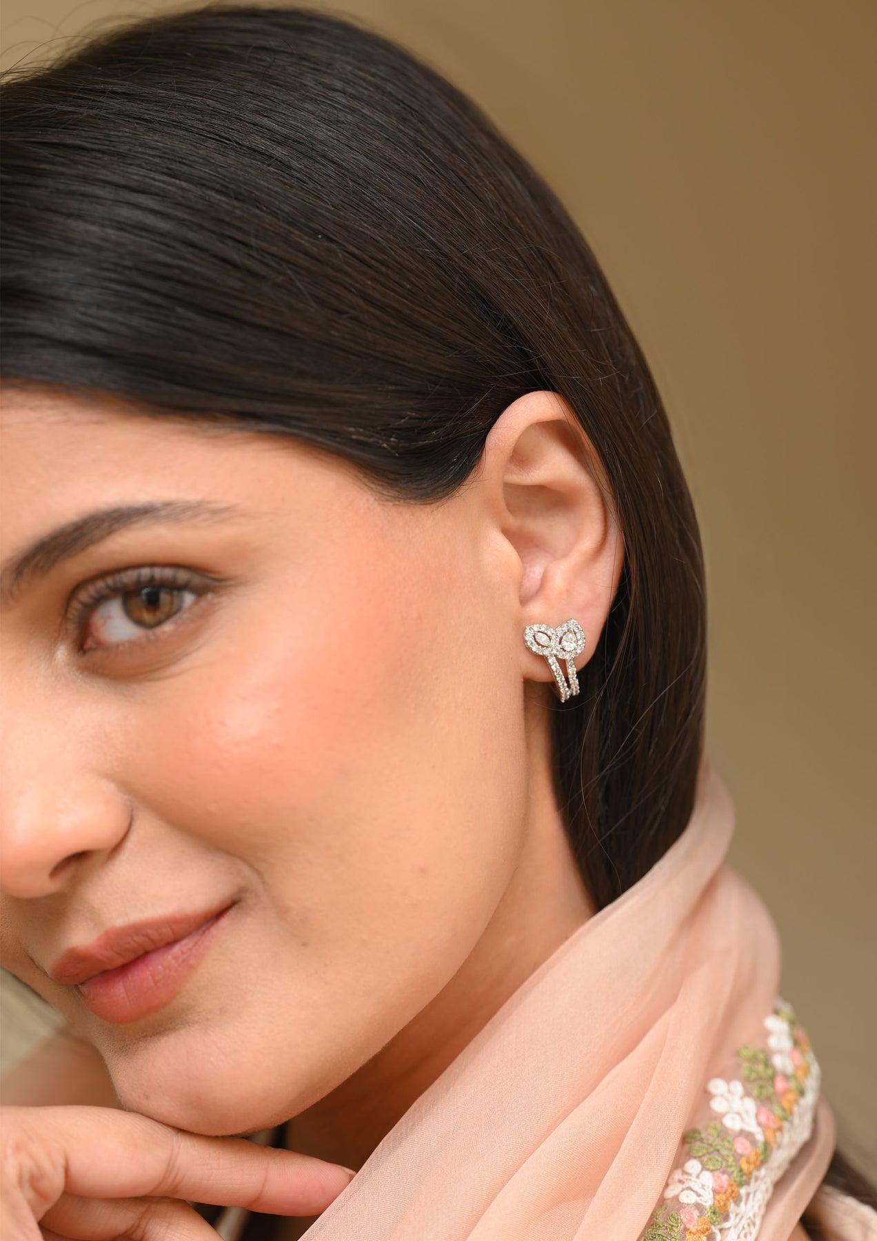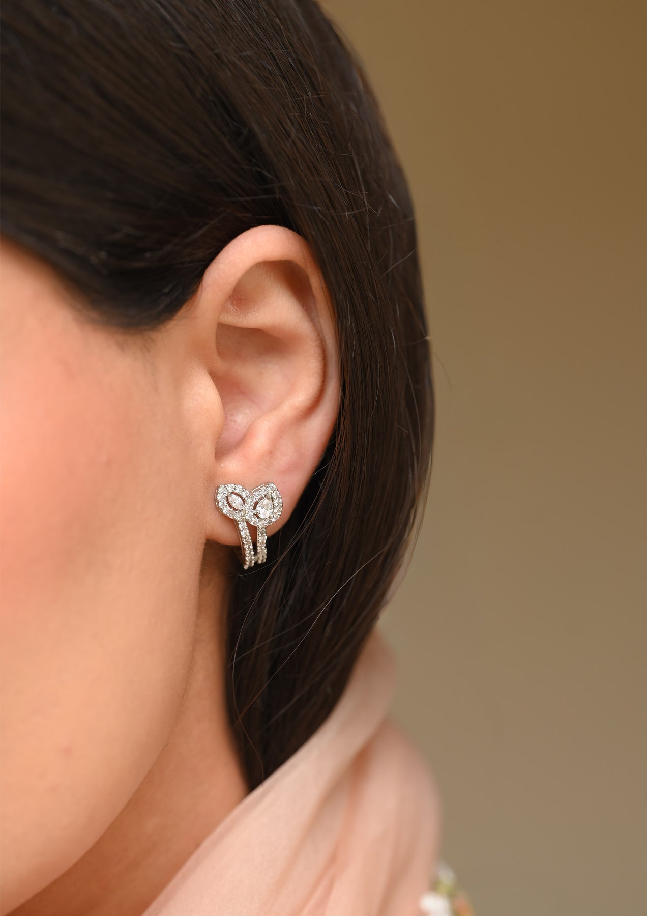 Sterling Silver Moonwood Earrings are beautifully handcrafted in sterling silver with white rhodium polish and fine micro plating for a luminous, long-lasting finish. Embellished with AAA Grade Cubic Zirconia, they offer a subtle yet elegant sparkle. Designed with a secure push-back lock, they are perfect for festive occasions, formal gatherings, and refined evening wear.
