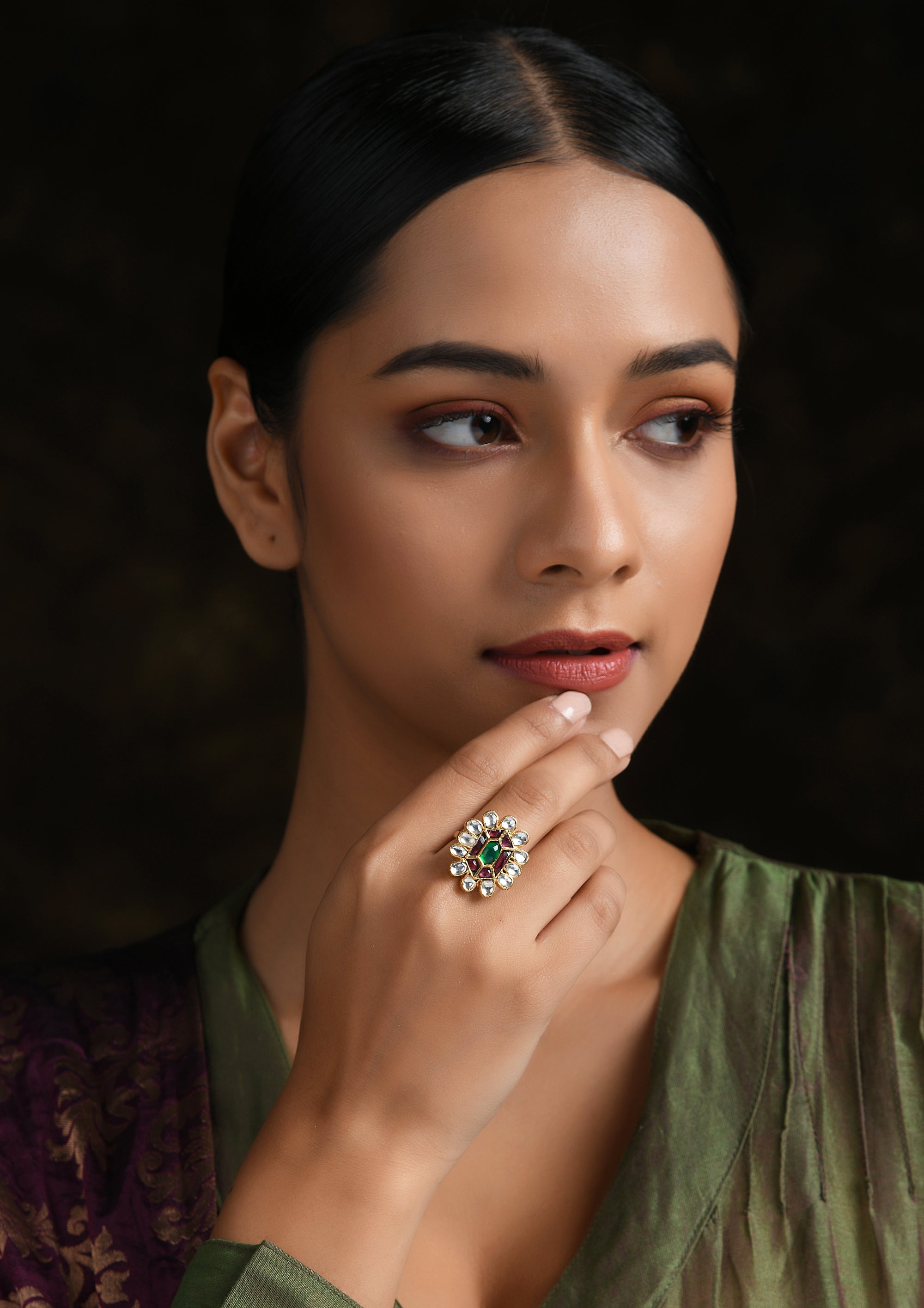 Delicate Multicolored Kundan Earrings With Pearl Drops
