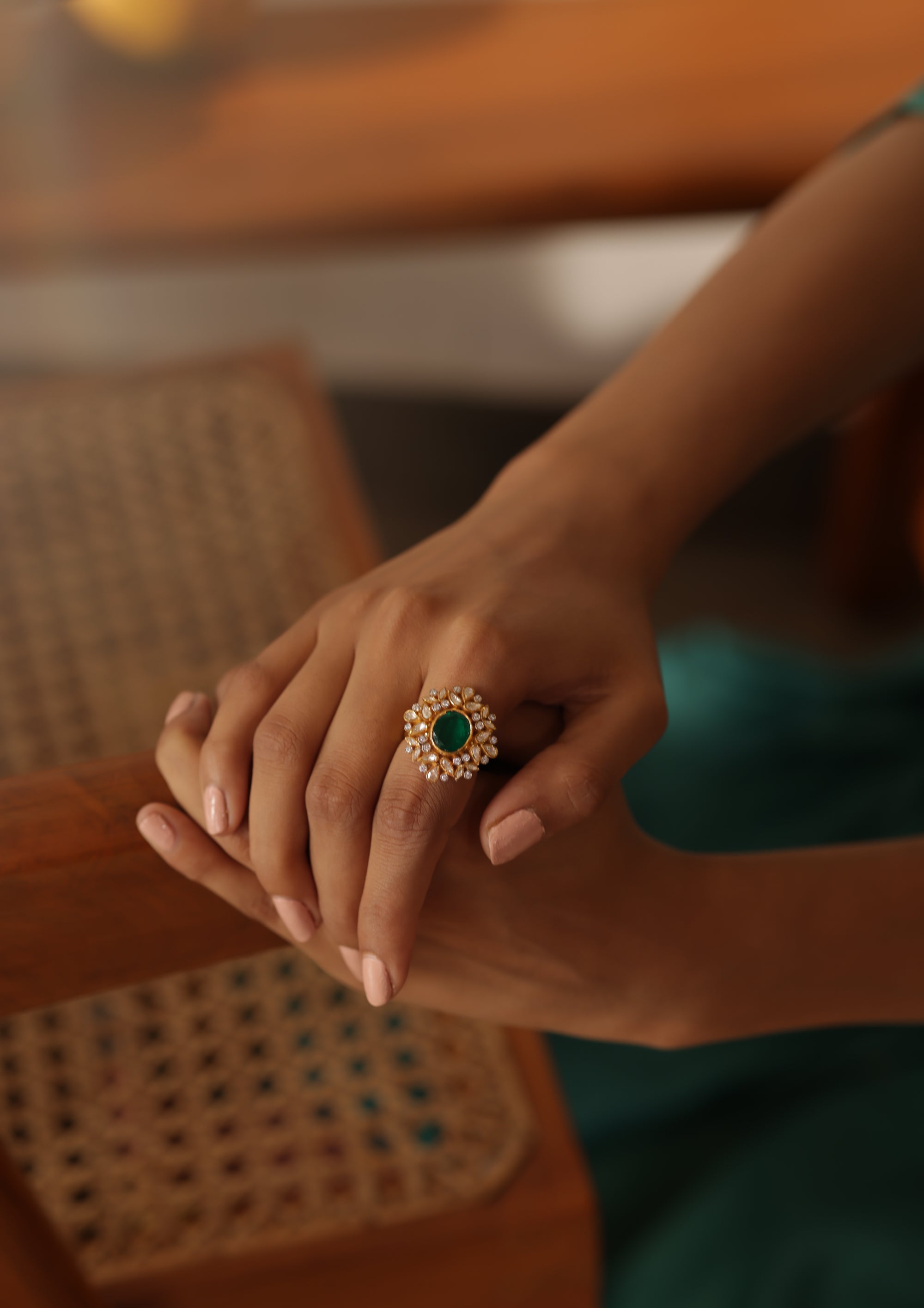 Stones and Beads: Semi-Moissanite Polki, Green Onyx, Lab Treated Emerald, Fresh Water Pearls